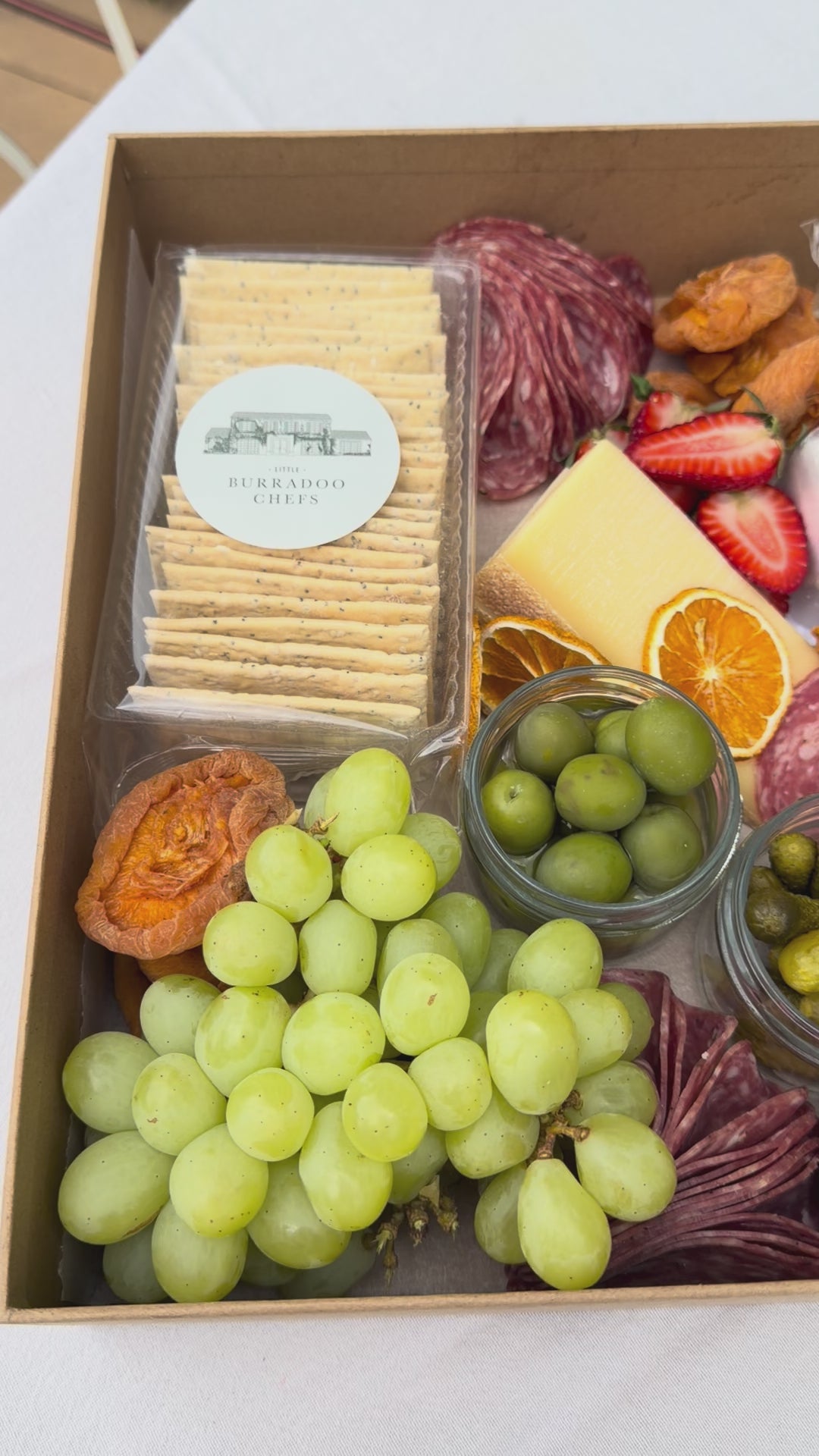 Paris Creek Farms Bio-Dynamic Triple Cream Camembert, Swiss Le Gruyère, Gorgonzola Dolce (Blue Cheese) Maggie Bear Spiced Pear Paste, Olives, Fruit, Pickles + Red Leicester, Truffle Manchego, Taramasalata, Hummus